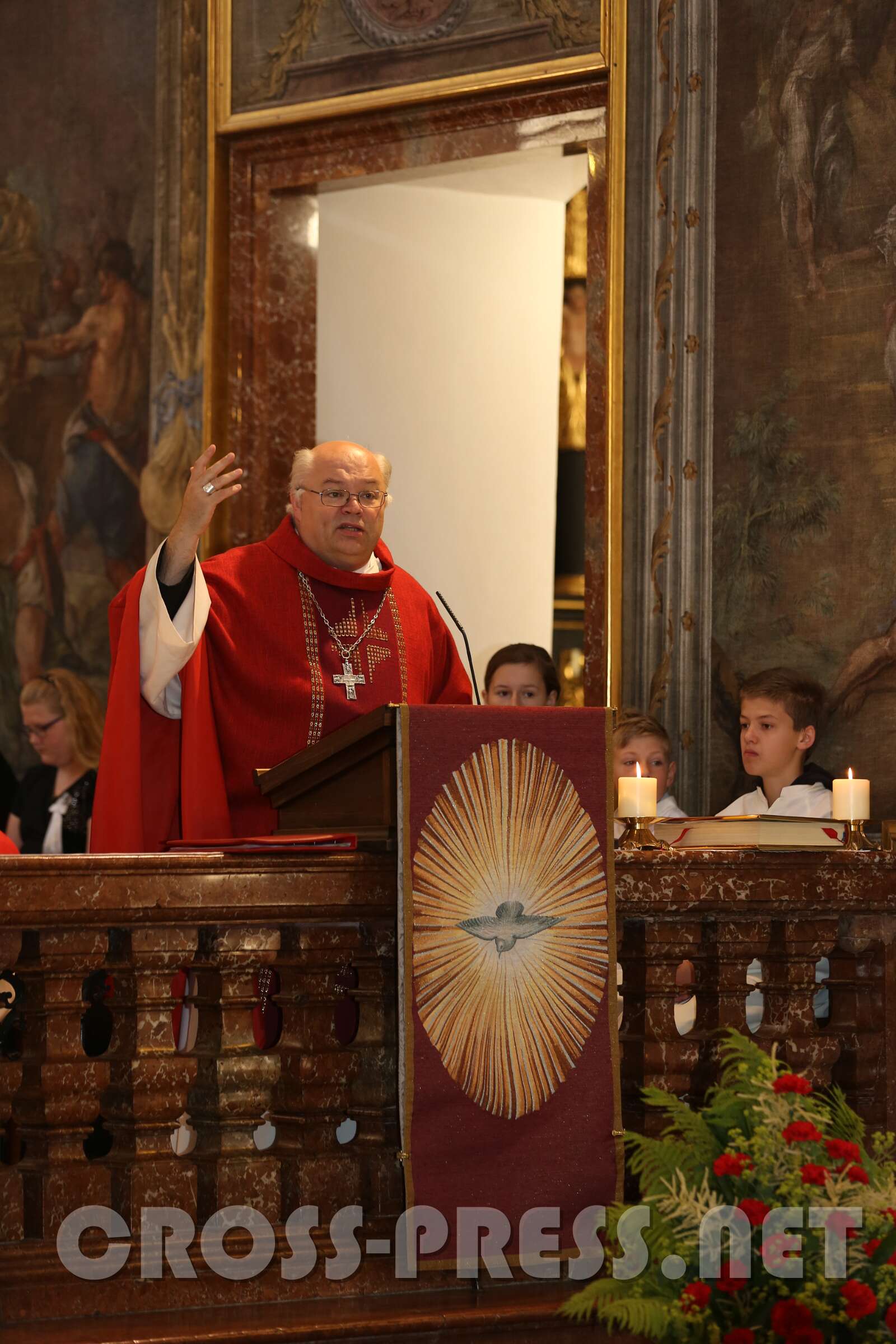 Die 30 Firmlinge in der ersten und 39 in der zweiten Messe erfuhren von ihrem firmspender Abt Petrus Pilsinger, dass es beim Fußballspielen neben dem Beachten der Regeln vor allem auf den Geist ankomme, der dahinter stehe. Denn viele würden gut spielen, aber nur wenige stechen hervor, wie etwa David Alaba. Ihm sei es wichtig, ein religiöses, also mit Gott verbundenes Leben zu führen. Er trägt unter seinem Trikot ein Leiberl, auf dem steht: "Meine Kraft liegt in Jesus!", und meinte in einem Interview: "Ein Leben ohne Gott ist wie Fußball ohne Ball." Es komme darauf an, den "Geist der Gebote" zu leben (vgl. Evangelium, Joh.14,15: "Wenn ihr mich liebt, werdet ihr meine Gebote halten!"). Diese seien nicht dazu da, um unser Gewissen zu beruhigen ("… hab eh niemanden umgebracht, nichts gestohlen, und lügen tu ich nur, wenn's ungedingt sein muss !"). Man fragt sich oft, wie Menschen mit einem schweren Schicksal trotzdem eine Ermutigung für uns sein können - wie sie das wohl schaffen. Es ist der Heilige Geist, der sie ermutigt und stärkt. Er lässt auch uns wissen, dass wir nicht allein sind. Jesus hat ihn auch uns geschickt, jedem, der gefirmt ist. Wir müssen aber auch offen sein für Ihn.