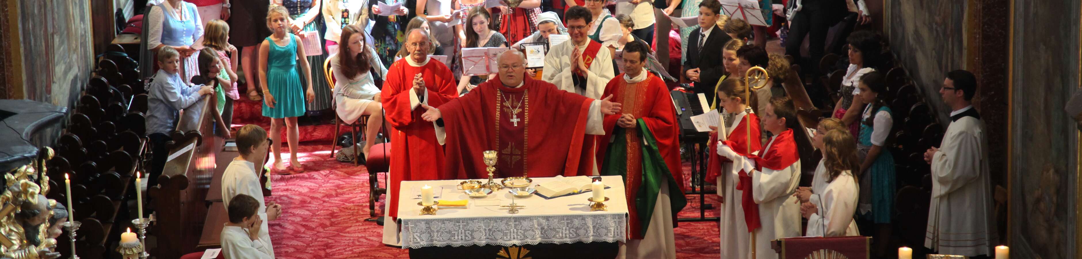 Die 30 Firmlinge in der ersten und 39 in der zweiten Messe erfuhren von ihrem firmspender Abt Petrus Pilsinger, dass es beim Fußballspielen neben dem Beachten der Regeln vor allem auf den Geist ankomme, der dahinter stehe. Denn viele würden gut spielen, aber nur wenige stechen hervor, wie etwa David Alaba. Ihm sei es wichtig, ein religiöses, also mit Gott verbundenes Leben zu führen. Er trägt unter seinem Trikot ein Leiberl, auf dem steht: "Meine Kraft liegt in Jesus!", und meinte in einem Interview: "Ein Leben ohne Gott ist wie Fußball ohne Ball." Es komme darauf an, den "Geist der Gebote" zu leben (vgl. Evangelium, Joh.14,15: "Wenn ihr mich liebt, werdet ihr meine Gebote halten!"). Diese seien nicht dazu da, um unser Gewissen zu beruhigen ("… hab eh niemanden umgebracht, nichts gestohlen, und lügen tu ich nur, wenn's ungedingt sein muss !"). Man fragt sich oft, wie Menschen mit einem schweren Schicksal trotzdem eine Ermutigung für uns sein können - wie sie das wohl schaffen. Es ist der Heilige Geist, der sie ermutigt und stärkt. Er lässt auch uns wissen, dass wir nicht allein sind. Jesus hat ihn auch uns geschickt, jedem, der gefirmt ist. Wir müssen aber auch offen sein für Ihn.