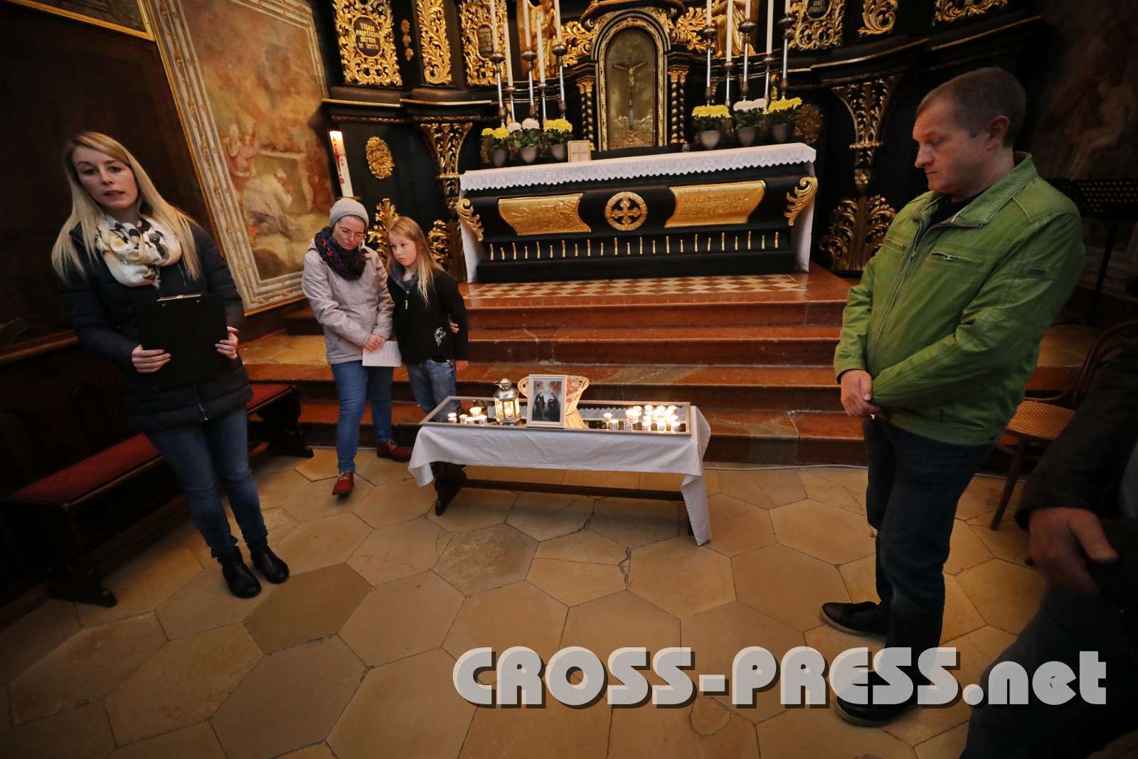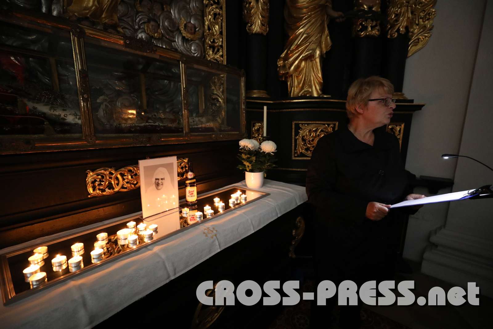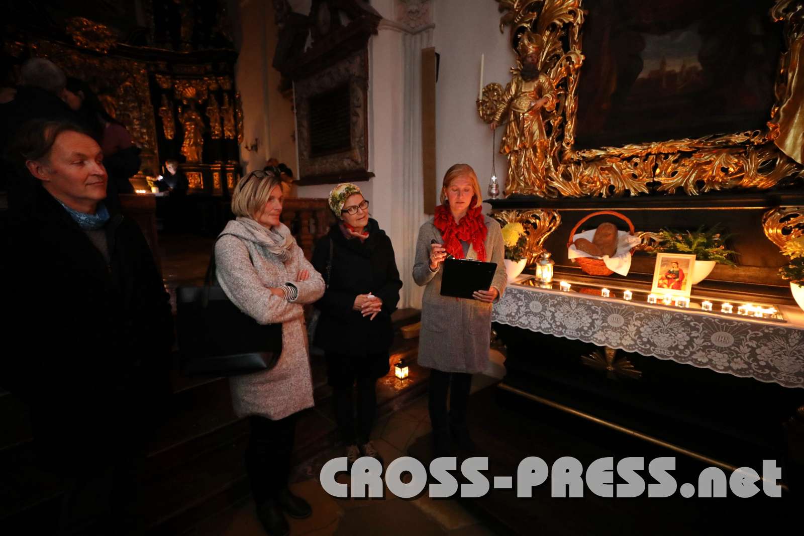 In der nur durch Kerzenlicht erleuchteten Kirche wurden an den Seitenaltären Bilder aufgestellt, die bekannte und weniger bekannte Heilige zeigten, sowie einige neuzeitliche "Lichtbringer/innen". Aus deren Biografien lasen Mönche und andere Beteiligte in Ichform, was die Besucher diesen leuchtenden Vorbildern noch näher brachte.