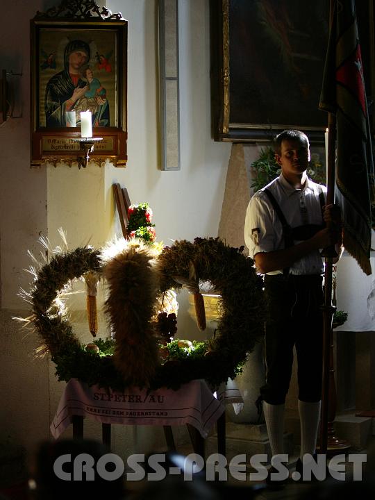 | Erntedank-Krone wurde zur Krone der Himmelskönigin. Bewacht von Landjugend-Bannerträger. :) · 2007-09-30_14.36.02.JPG |
