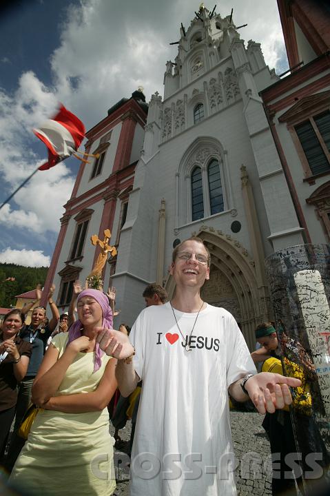 | KAMERA: Canon EOS-1DS · DATUM: 15.08.07 12:22 · AUFLÖSUNG: 2704 x 4064 · ISO-EINSTELLUNG: 100 · BELICHTUNGSMODUS: Shutter priority · BELICHTUNGSDAUER: 1/60s · ÖFFNUNG: 13.0 · BRENNWEITE: 16.0mm · White Balance: Auto white balance · BLITZ: Flash fired · Headline: Jugendwallfahrt "Aufbrechen", Mariazell 2007 · City: Mariazell · State/Province: Stmk · Country: Austria · Copyright: Jerko Malinar · See map |