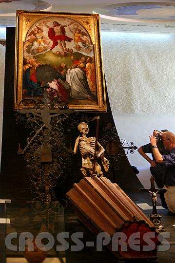 | KAMERA: Canon EOS-1DS | DATUM: 27.04.07 13:16 | AUFLÖSUNG: 2704 x 4064 | ISO-EINSTELLUNG: 400 | BELICHTUNGSMODUS: Auto exposure | BELICHTUNGSDAUER: 1/30s | ÖFFNUNG: 2.8 | BRENNWEITE: 75.0mm | BLITZ: Flash did not fire | Headline: Feuer & Erde Ausstellungseröffnung | City: St.Peter in der Au | Copyright: Jerko Malinar | Caption: Für Christen endet das Leben nicht in der Erde, sondern es findet einen neuen Anfang in der Auferstehung. 'Christi Himmelfahrt', Georg Scheible, 17Jh., Benediktinerstift Kremsmünster. |