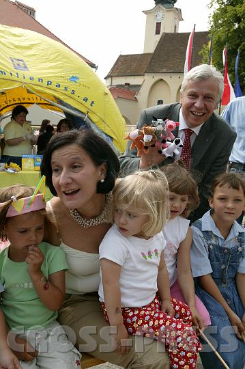 | KAMERA: Canon EOS-1DS | DATUM: 23.05.07 10:46 | AUFLÖSUNG: 2704 x 4064 | ISO-EINSTELLUNG: 100 | BELICHTUNGSMODUS: Auto exposure | BELICHTUNGSDAUER: 1/80s | ÖFFNUNG: 11.0 | BRENNWEITE: 35.0mm | BLITZ: Flash did not fire | Headline: Kindergartenfest im Rahmen der NÖ Landesausstellung | City: St.Peter in der Au | Copyright: Jerko Malinar | Caption: Landesrätin Mag. Johanna Mikl-Leitner und LAbg. Bürgermeister von St.Peter/Au Mag. Johann Heuras. |