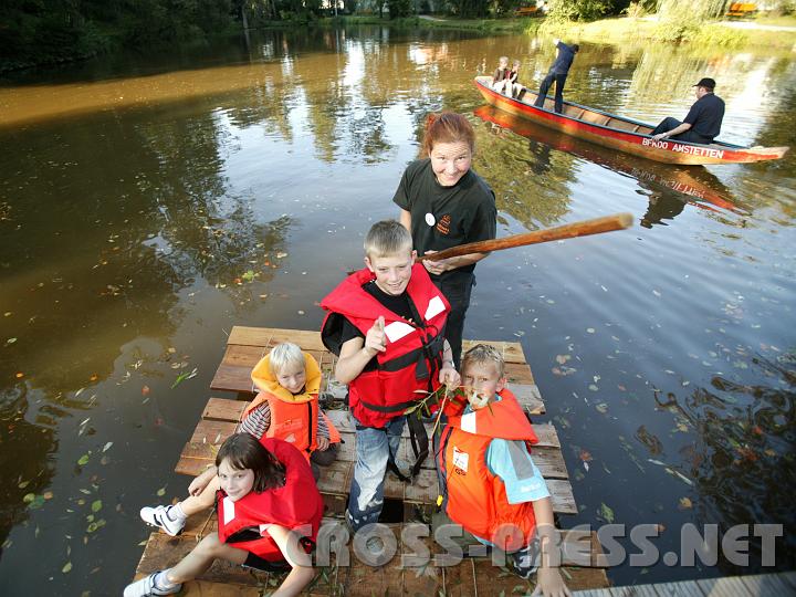 | Attraktion besonderer Art: ein Floß selber zu bauen und im Schlossteich gleich auf Schwimmtauglichkeit auszuprobieren. · 2007-09-16_16.54.10.JPG |