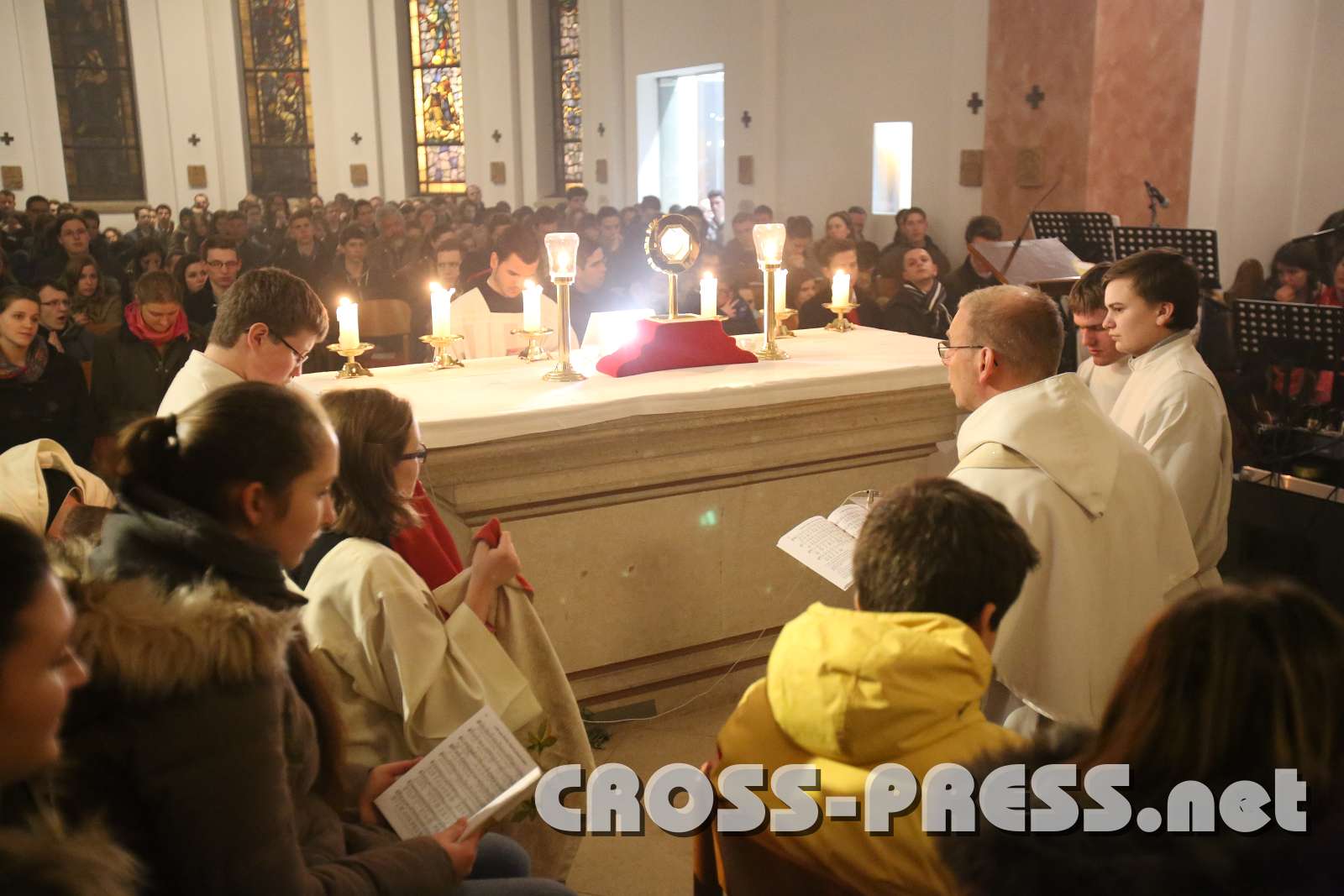 Meditation nach dem Morgenlob im Anbetungszelt."Visus, tactus, gustus in te fallitur,AnbetungAltarraum voll JugendlicherRund um den Tisch des Herrn Keywords New images Shopping CartSelect All None Keep only selected Add selected