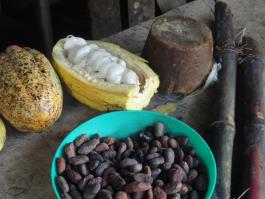 Zutaten für natürlichste und "biologischste" Schokolade:  Rohzucker ("Dulce") aus selbstangebautem Zuckerrohr und selbstgepflückten und gerösteten Kakaobohnen. :)