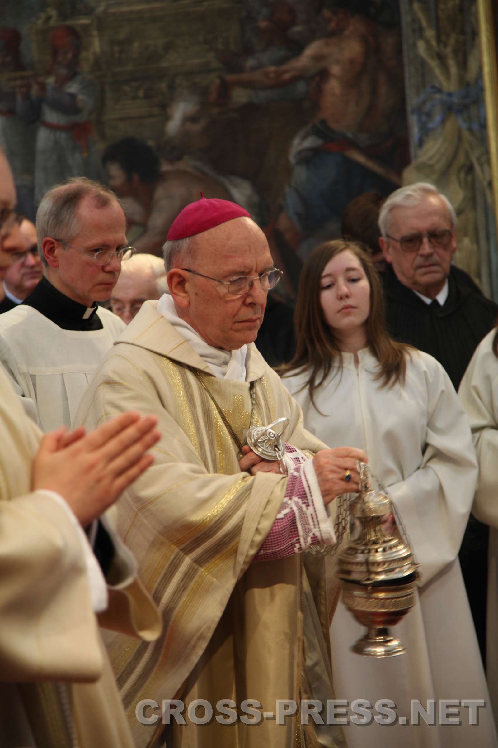 Diözesanbischof DDr.Klaus Küng beim Inzensieren des Altars zu Beginn der Benediktionsmesse.