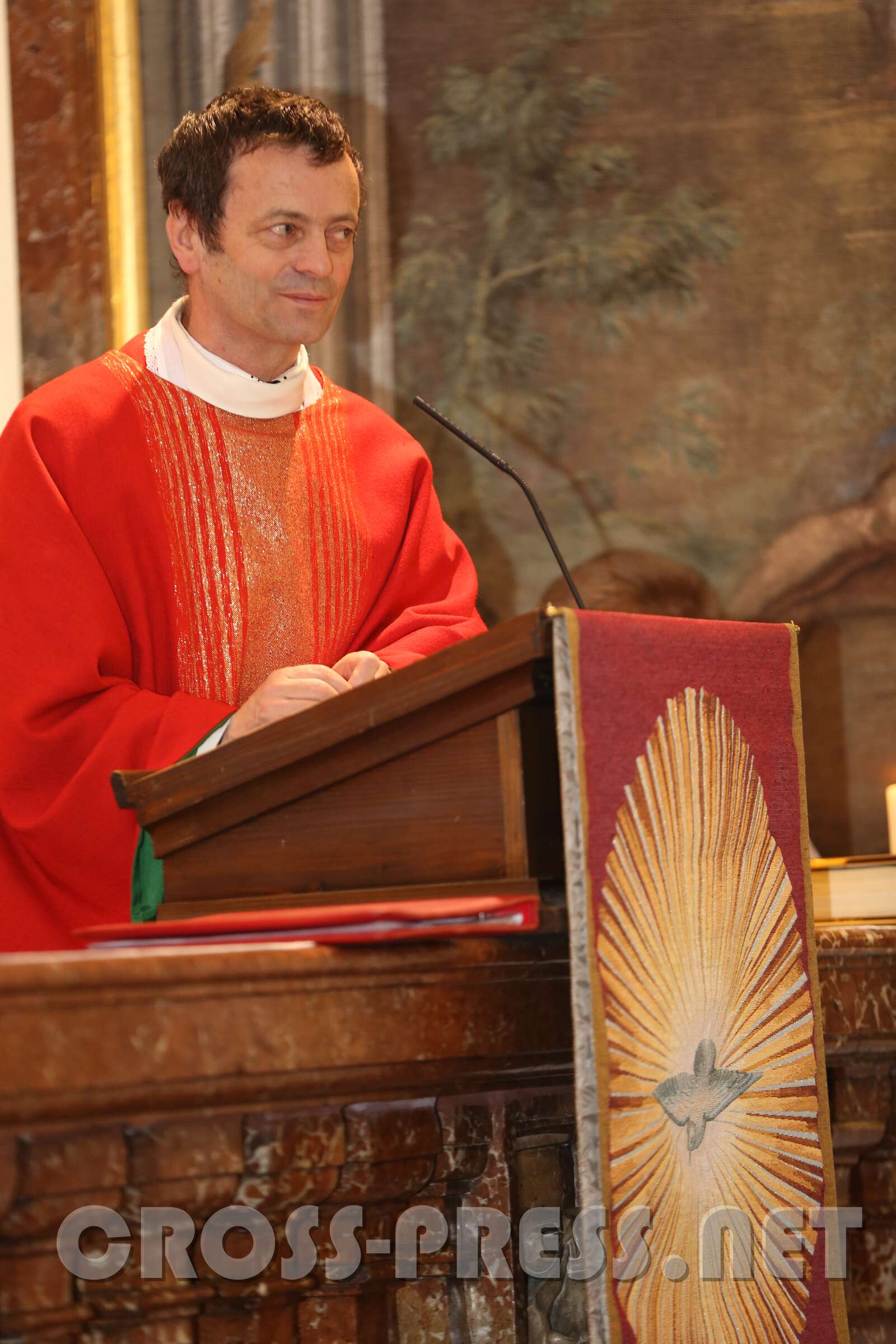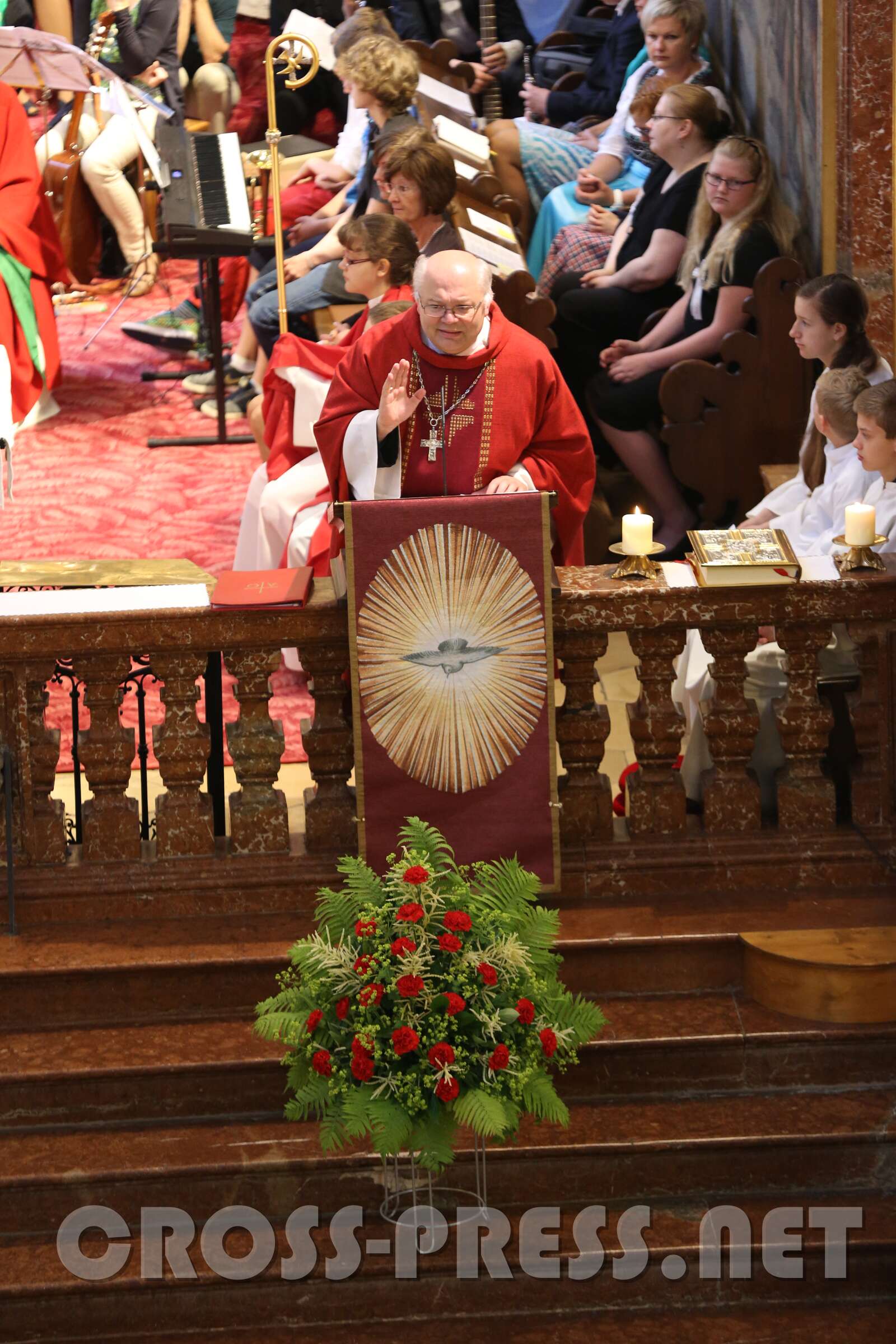 Die 30 Firmlinge in der ersten und 39 in der zweiten Messe erfuhren von ihrem firmspender Abt Petrus Pilsinger, dass es beim Fußballspielen neben dem Beachten der Regeln vor allem auf den Geist ankomme, der dahinter stehe. Denn viele würden gut spielen, aber nur wenige stechen hervor, wie etwa David Alaba. Ihm sei es wichtig, ein religiöses, also mit Gott verbundenes Leben zu führen. Er trägt unter seinem Trikot ein Leiberl, auf dem steht: "Meine Kraft liegt in Jesus!", und meinte in einem Interview: "Ein Leben ohne Gott ist wie Fußball ohne Ball." Es komme darauf an, den "Geist der Gebote" zu leben (vgl. Evangelium, Joh.14,15: "Wenn ihr mich liebt, werdet ihr meine Gebote halten!"). Diese seien nicht dazu da, um unser Gewissen zu beruhigen ("… hab eh niemanden umgebracht, nichts gestohlen, und lügen tu ich nur, wenn's ungedingt sein muss !"). Man fragt sich oft, wie Menschen mit einem schweren Schicksal trotzdem eine Ermutigung für uns sein können - wie sie das wohl schaffen. Es ist der Heilige Geist, der sie ermutigt und stärkt. Er lässt auch uns wissen, dass wir nicht allein sind. Jesus hat ihn auch uns geschickt, jedem, der gefirmt ist. Wir müssen aber auch offen sein für Ihn.