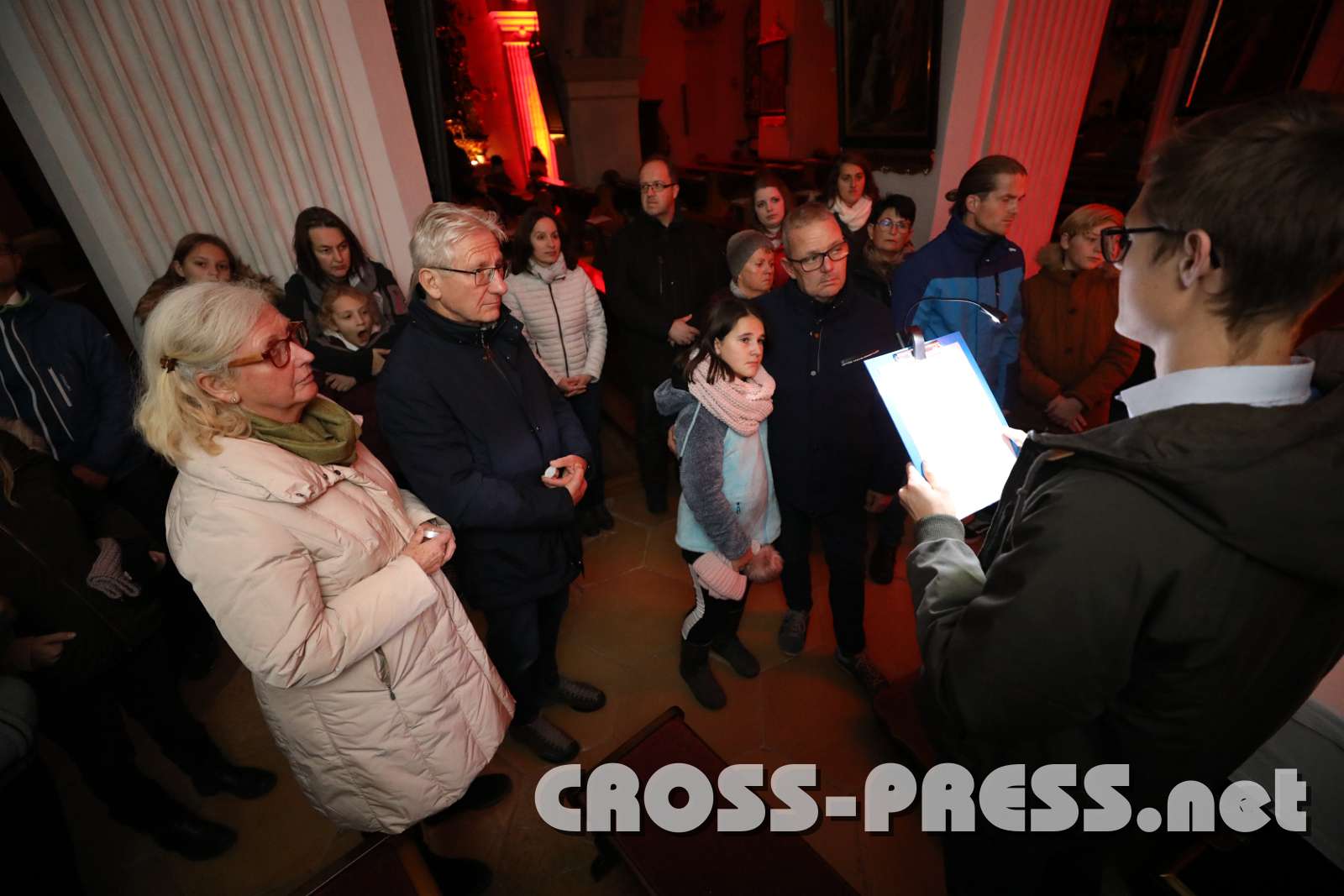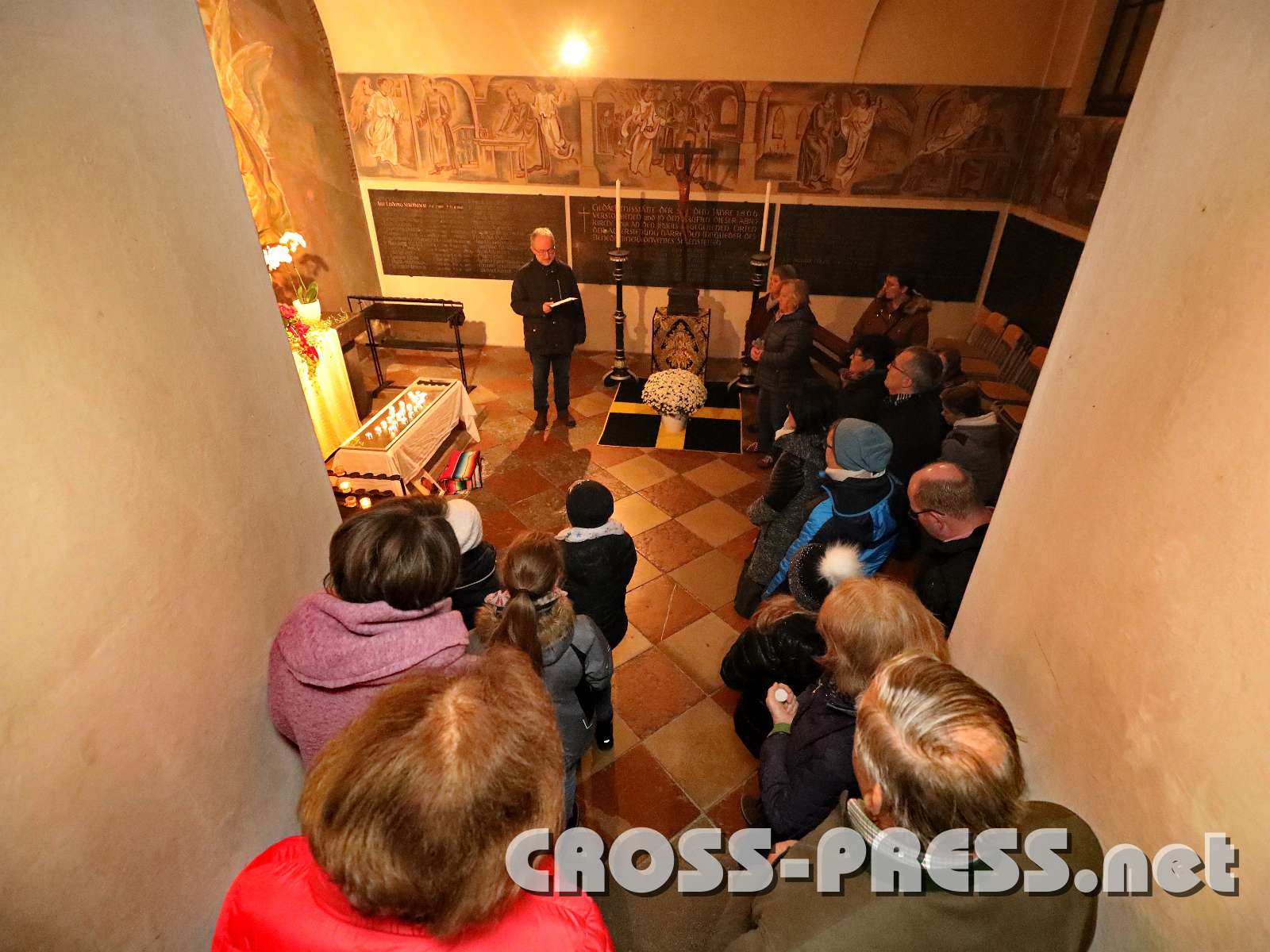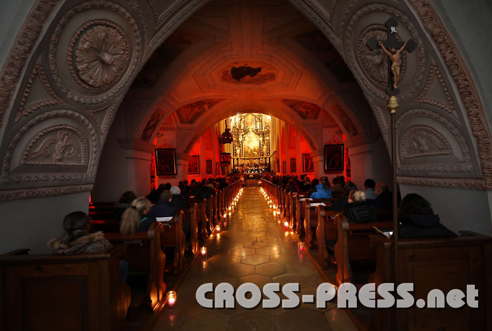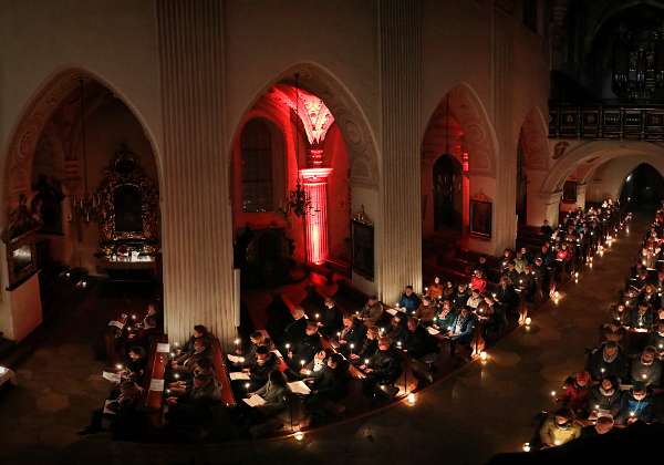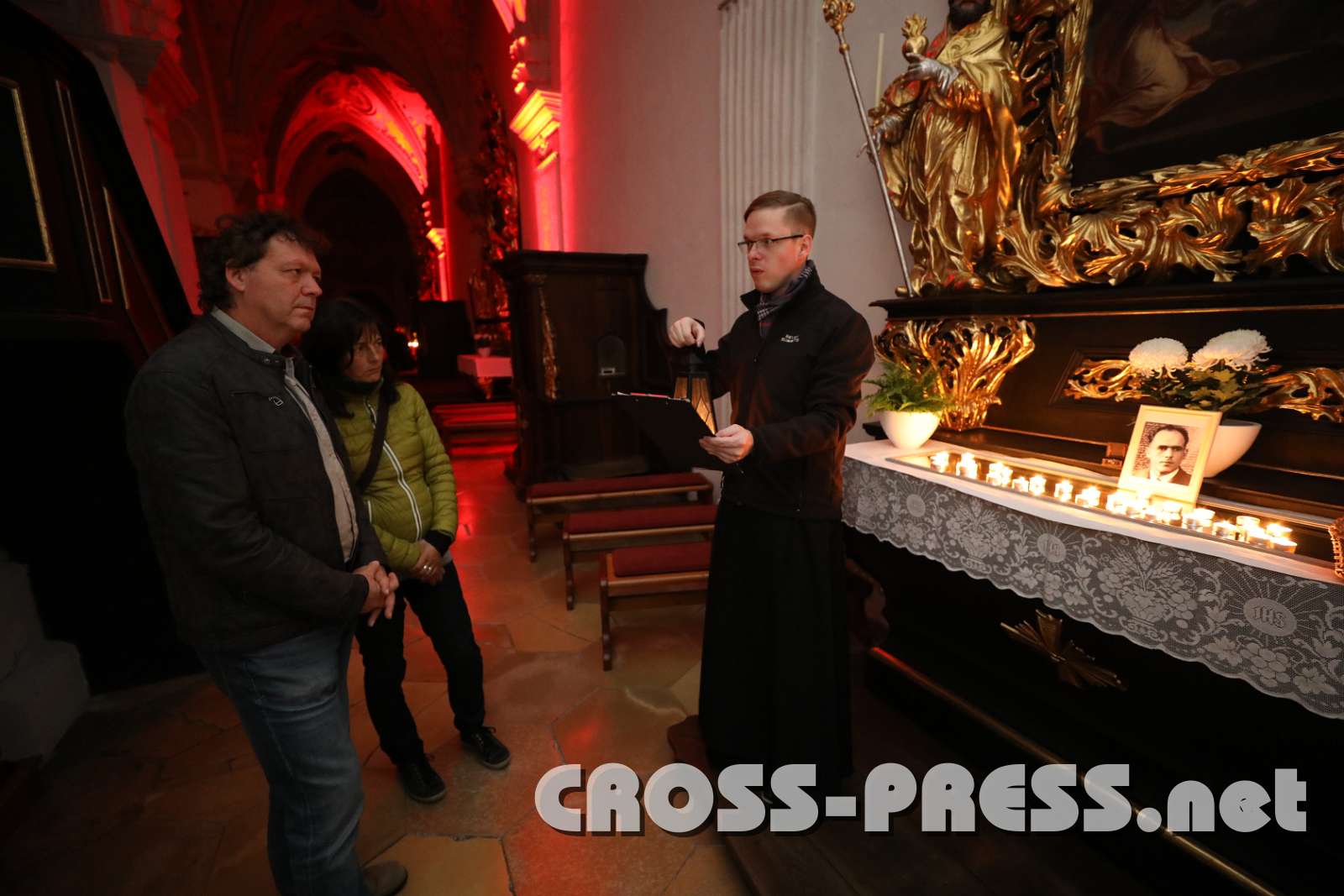 In der nur durch Kerzenlicht erleuchteten Kirche wurden an den Seitenaltären Bilder aufgestellt, die bekannte und weniger bekannte Heilige zeigten, sowie einige neuzeitliche "Lichtbringer/innen". Aus deren Biografien lasen Mönche und andere Beteiligte in Ichform, was die Besucher diesen leuchtenden Vorbildern noch näher brachte.