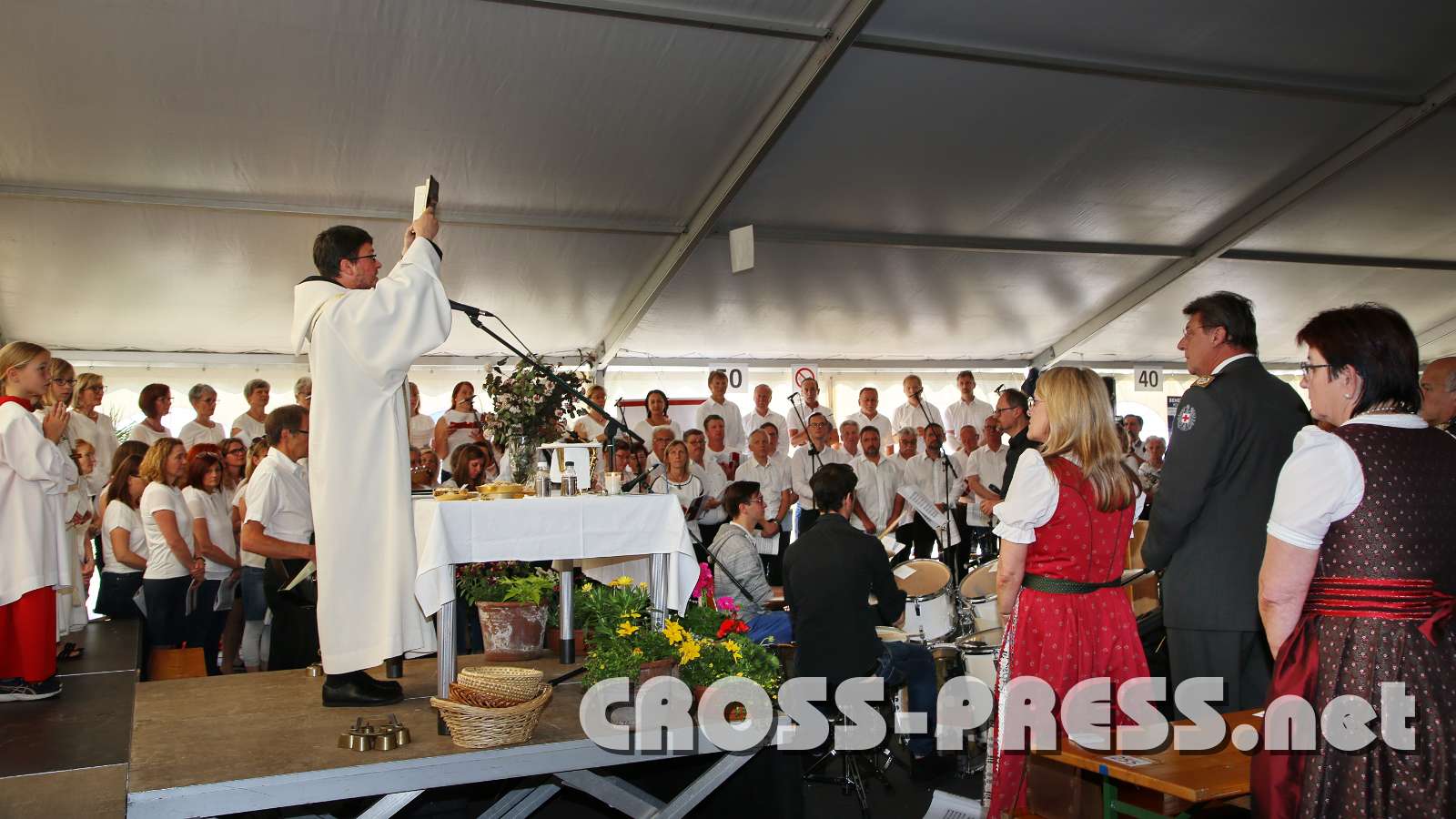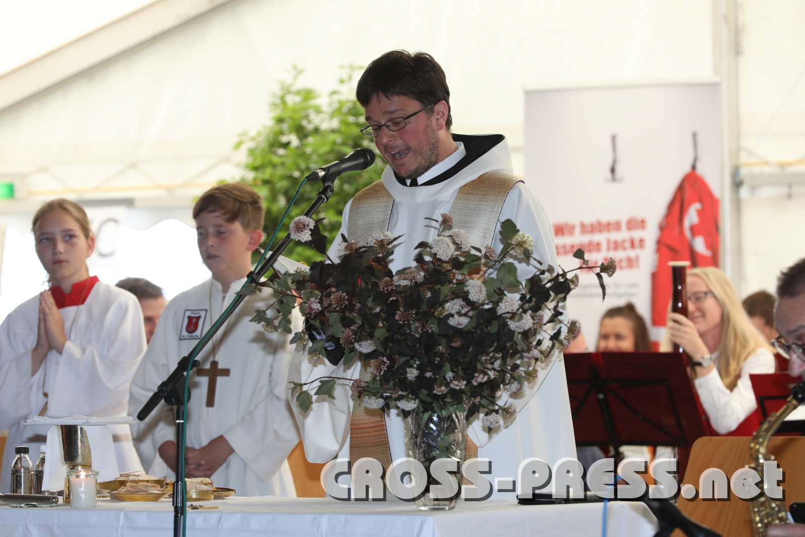 P. Florian Ehebruster zelebriert den Festgottesdienst im Zelt.