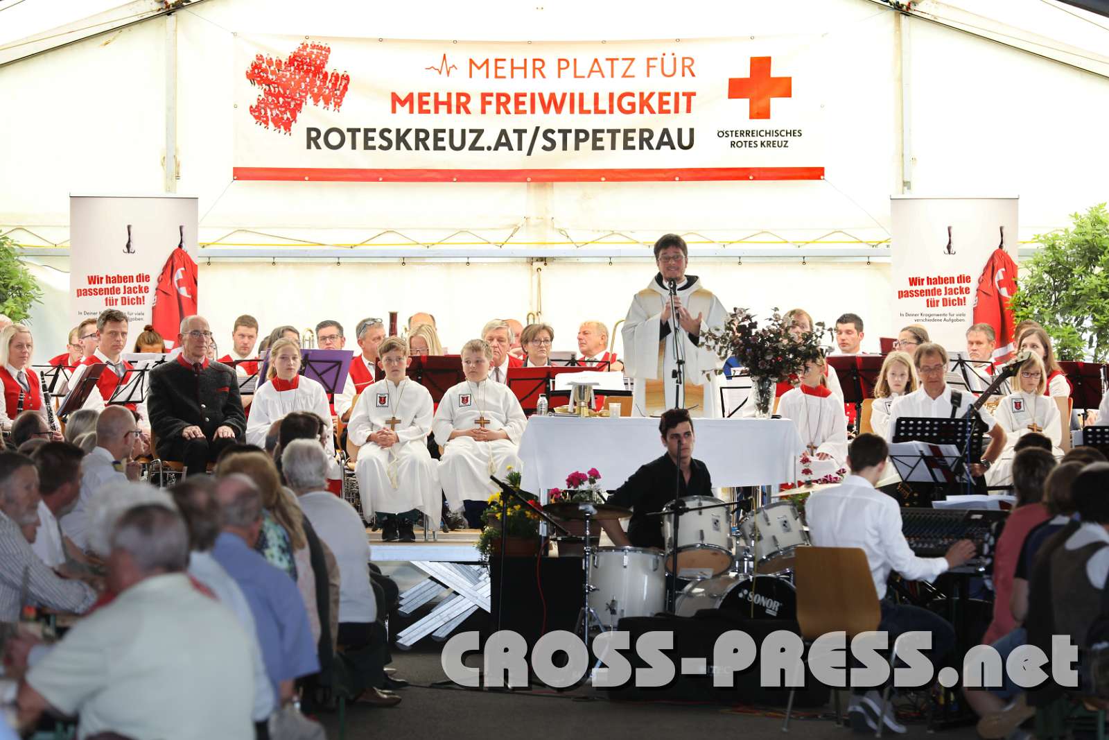 Eröffnung und Segnung der Rotkreuz Bezirksstelle St.Peter/Au P. Florian Ehebruster zelebriert den Festgottesdienst im Zelt.
