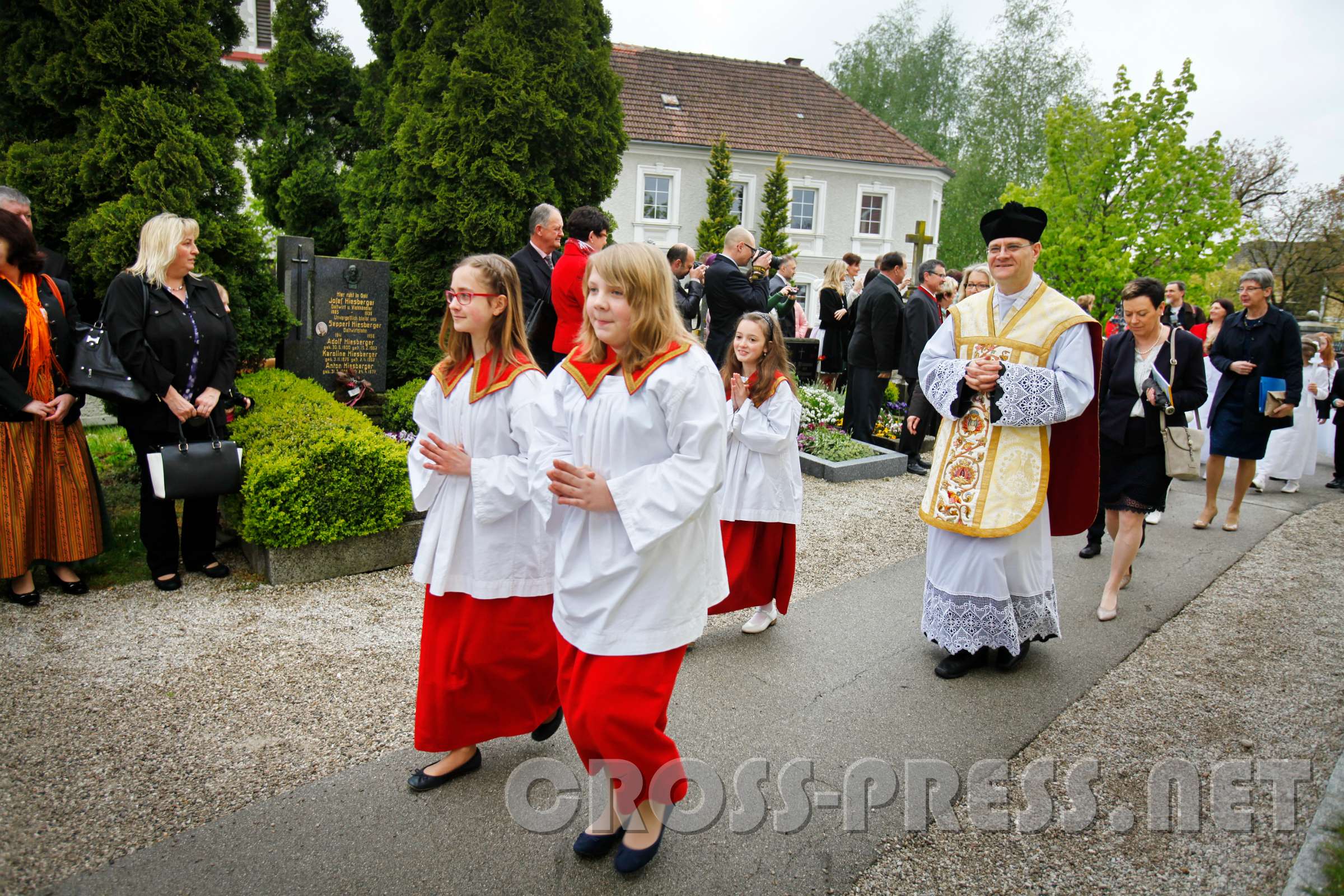 Erstkommunion 2016 in Wolfsbach Pfarrer P.Jacobus ist eingetroffen.