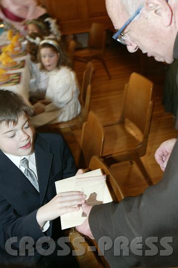 | KAMERA: Canon EOS-1DS | DATUM: 17.05.07 11:25 | AUFLÖSUNG: 2305 x 3458 | ISO-EINSTELLUNG: 400 | BELICHTUNGSMODUS: Auto exposure | BELICHTUNGSDAUER: 1/25s | ÖFFNUNG: 4.0 | BRENNWEITE: 35.0mm | BLITZ: Flash fired | Headline: Erstkommunion der Pfarre zur Allerheiligsten Dreifaltigkeit (Franziskaner-Pfarre) | City: St.Pölten | Copyright: Jerko Malinar | Keywords: Erstkommunion |