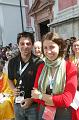 Moderatorin und Pressefotograf.