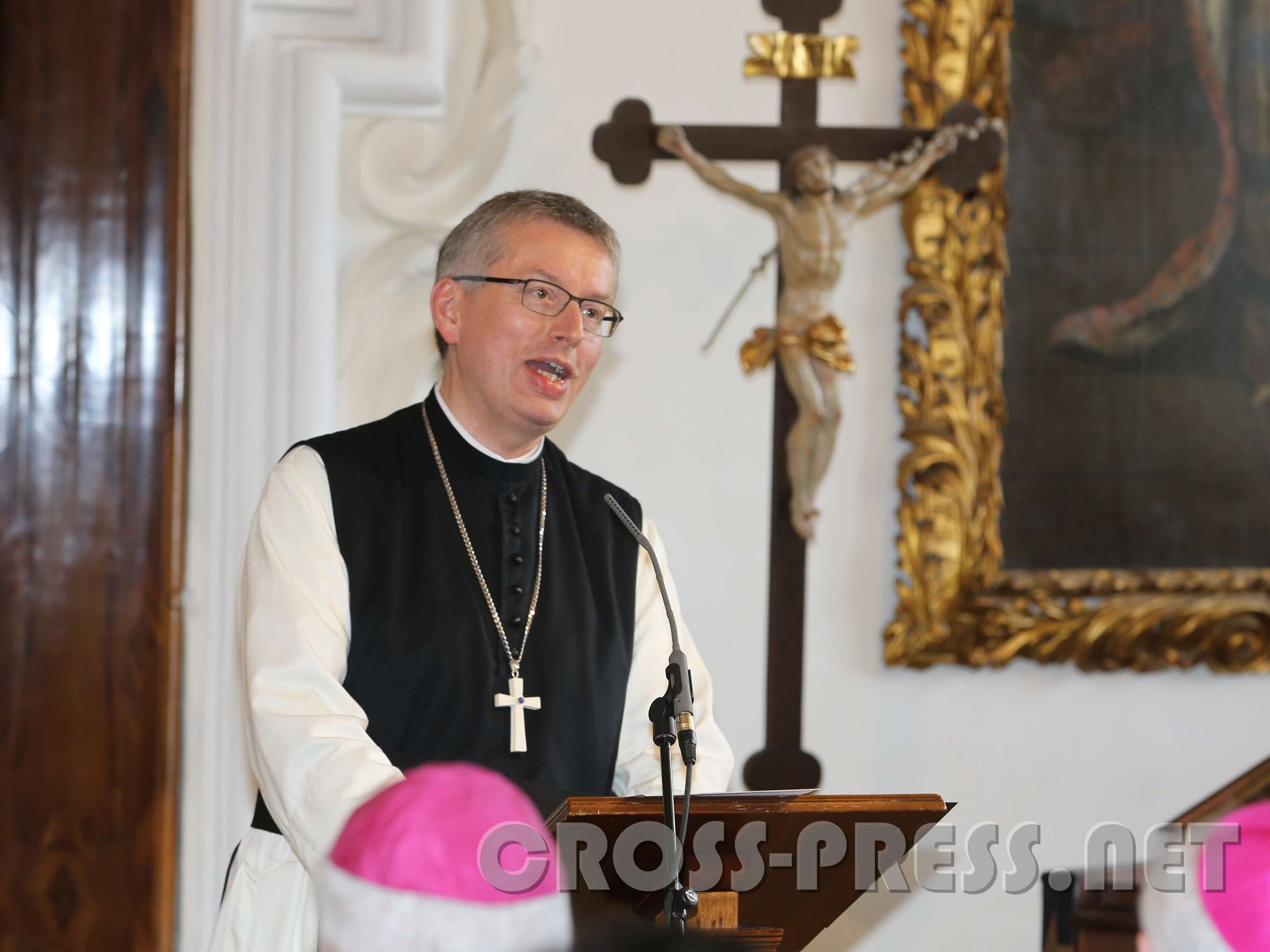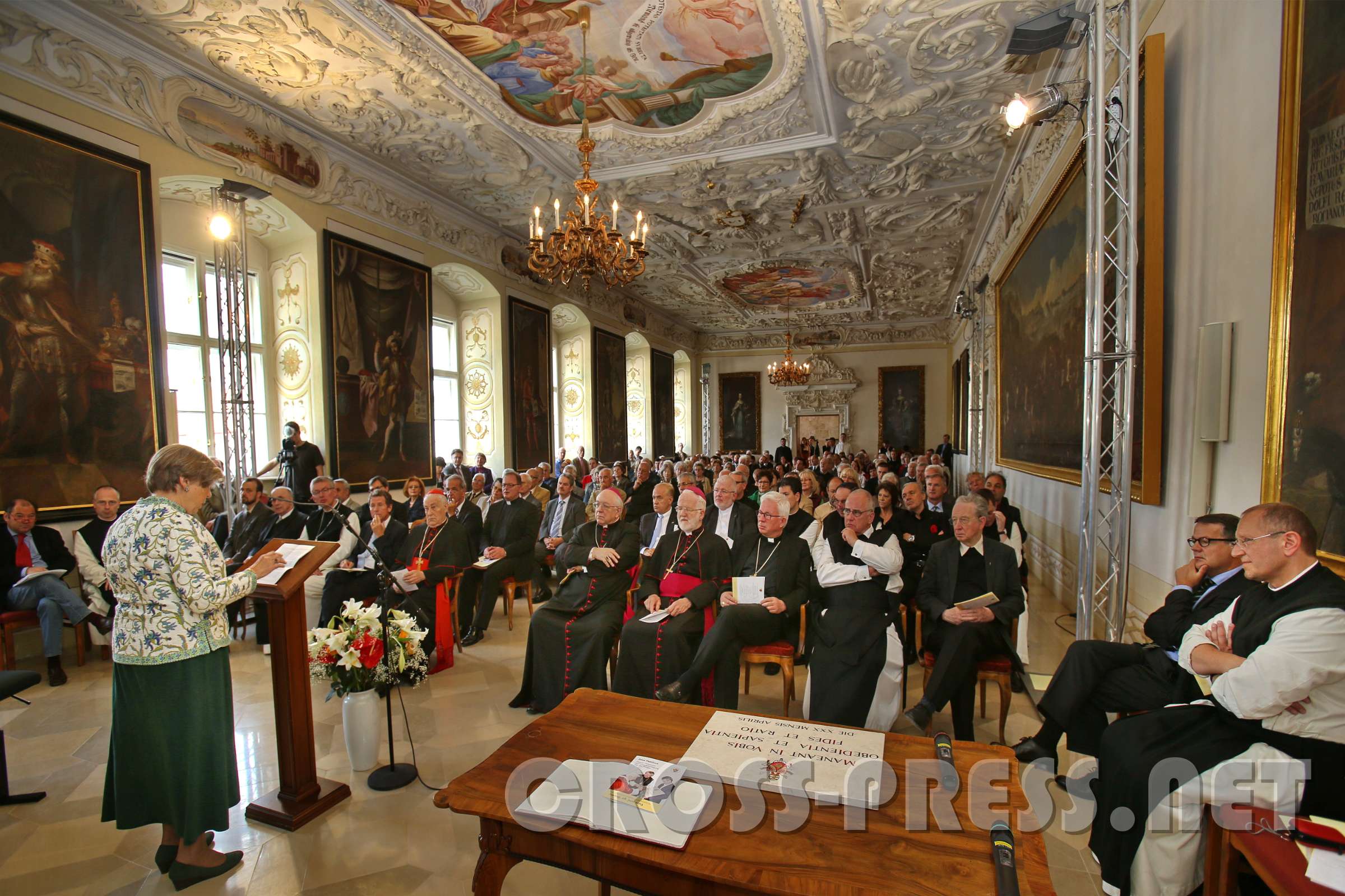 Abt Maximilian Heim begrüßt die versammelte Festgemeinde im Kaisersaal des Stiftes.