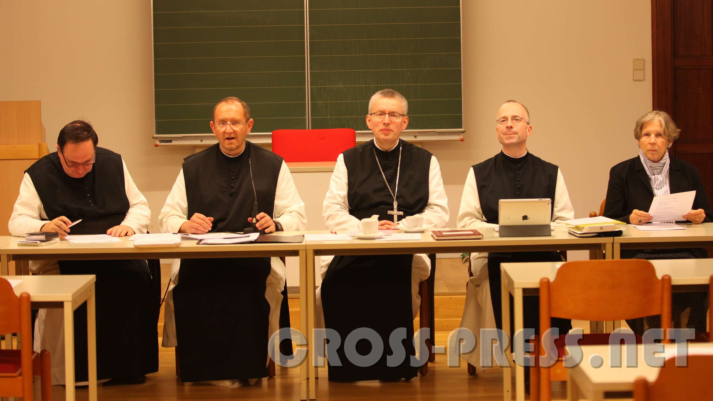 HochSchul-Konferenz, v.l.n.r.: Prof. P.Bernhard Vošicky, Rektror P.Karl Wallner, Großkanzler Abt Maximilian Heim, Vizerektor Prof. DDr. P.Alkuin Schachenmayr…
