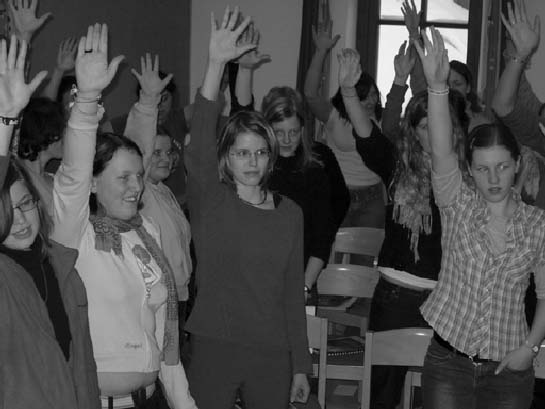· wenn miteinander etwas erarbeitet und auf ein Ziel hingearbeitet wird, wenn alle auf der Bühne stehen und durch Höhen und Tiefen miteinander gehen · durch das gemeinsame sich Einlassen auf einen längeren Prozess · indem die Fähigkeiten und Talente der Mitwirkendendas Projekt ausmachen · weil Teamarbeit im Vordergrund steht · wenn Verbindlichkeiten vereinbart werden · weil es Orte geben soll, an denen prägende Erfahrungen möglich sind · wenn es Orte der Auseinandersetzung gibt, an denen aktuellen Themen aus der Gesellschaft erörtert werden und junge Leute bewegen · weil viele Interessierte damit angesprochen werden können · weil diese Projekte einfach Spass machen und das Gemeinschaftsgefühl stärken