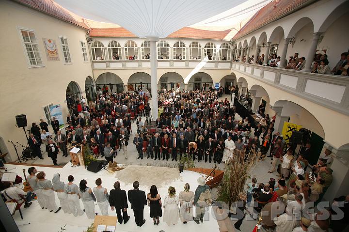 | KAMERA: Canon EOS-1DS | DATUM: 27.04.07 15:58 | AUFLÖSUNG: 4064 x 2704 | ISO-EINSTELLUNG: 100 | BELICHTUNGSMODUS: Auto exposure | BELICHTUNGSDAUER: 1/80s | ÖFFNUNG: 3.5 | BRENNWEITE: 16.0mm | BLITZ: Flash fired | Headline: Feuer & Erde Ausstellungseröffnung | City: St.Peter in der Au | Copyright: Jerko Malinar | Caption: Am Schluß wird die NÖ Landeshymne gesungen. |