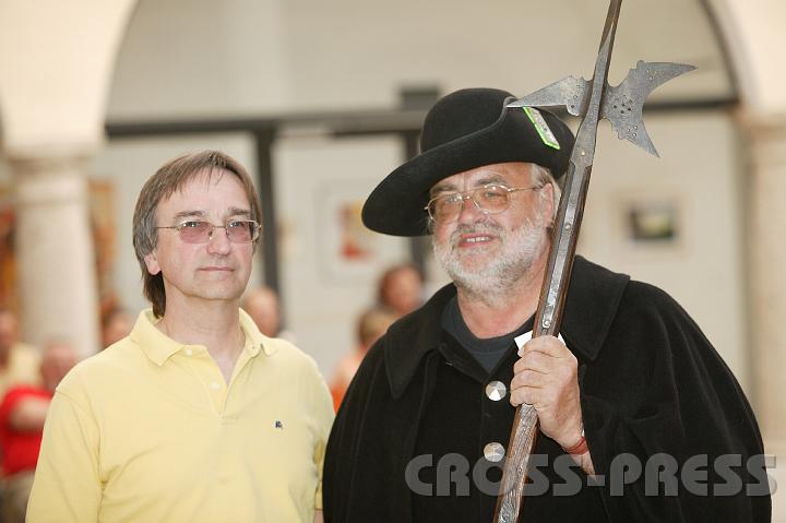 | Herbert Pauli las aus seinen Dichtungen, im Bild mit Franz Divinzez, den 'Steyrer Nachtwächter', die auch presäntiert wurden. | 07.04.28 103 |