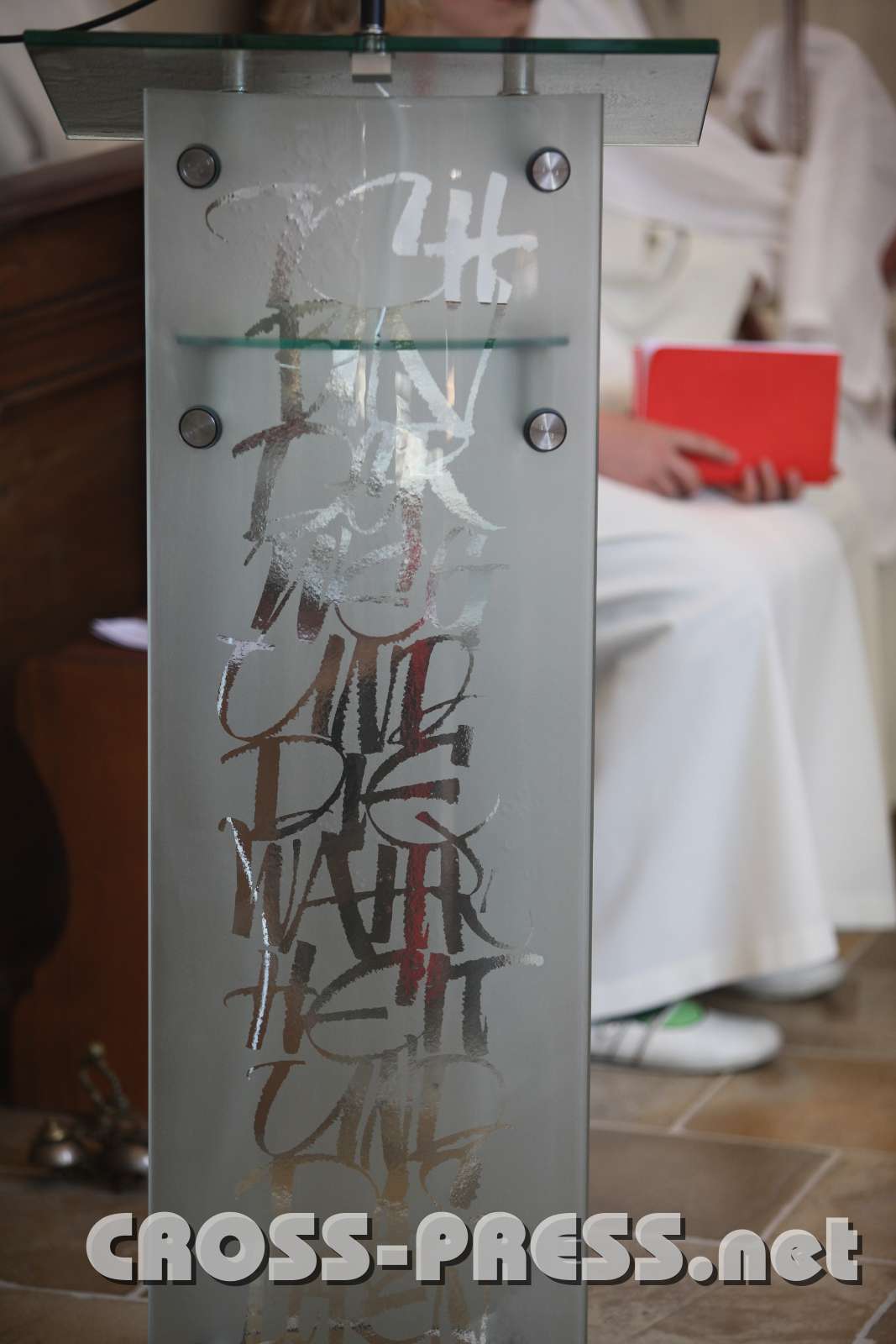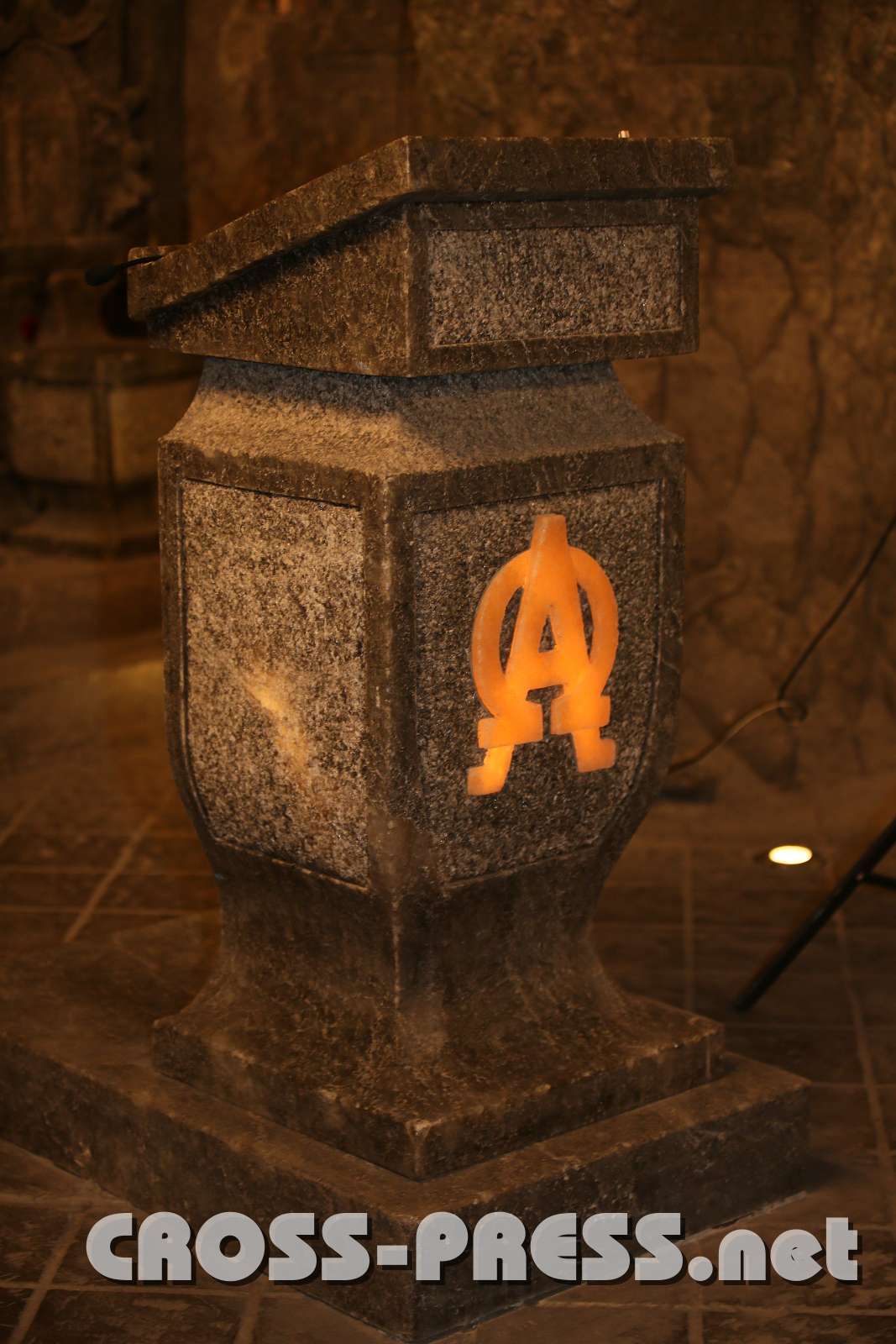 Neuer, moderner Ambo, doch passend in das alte Ambiente.Ambo mit leuchtenden Alpha und Omega Amblem aus Salz. Keywords Orgel und EmporeKanzel New images Shopping CartSelect All None Keep only selected Add selected