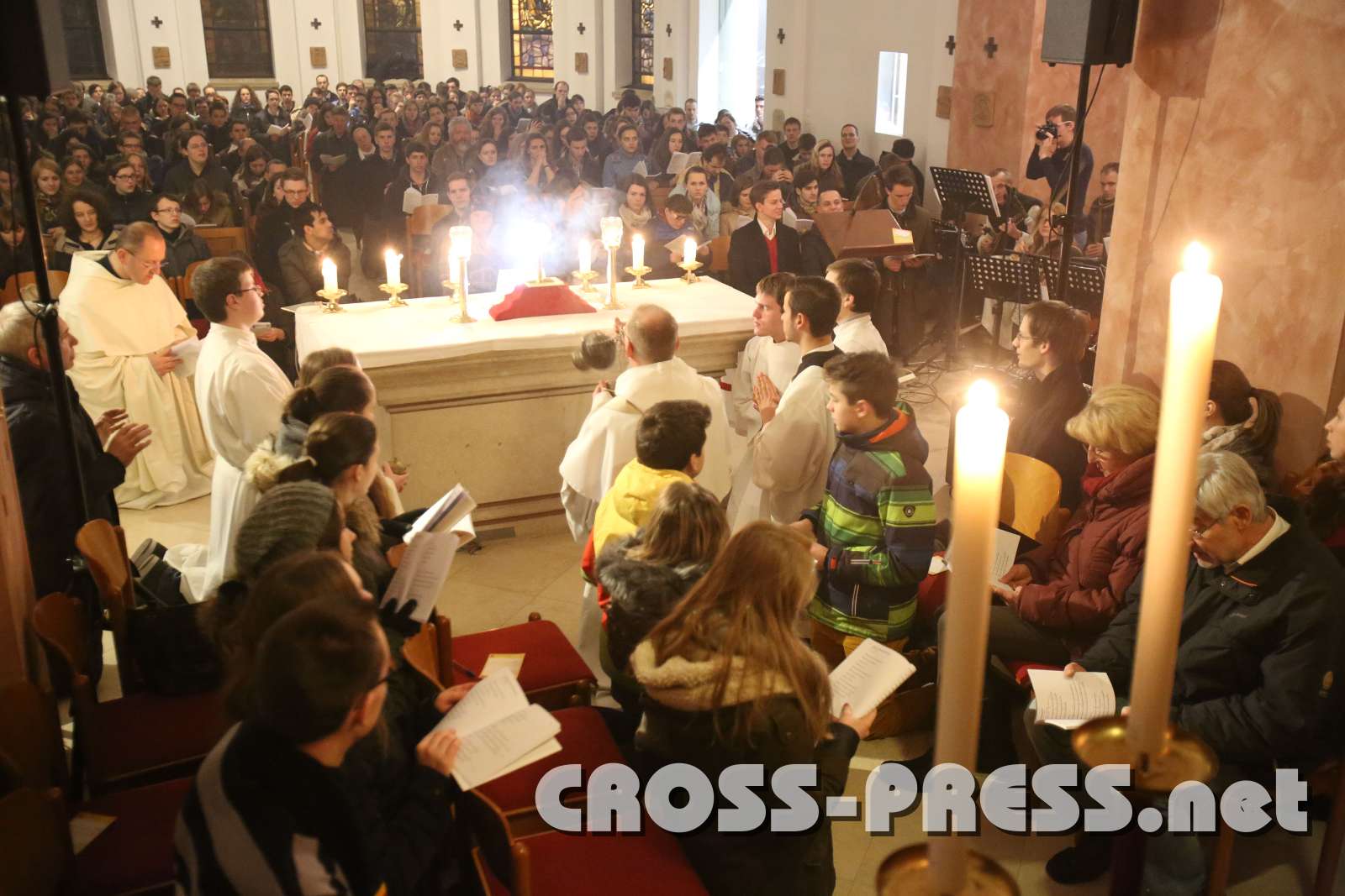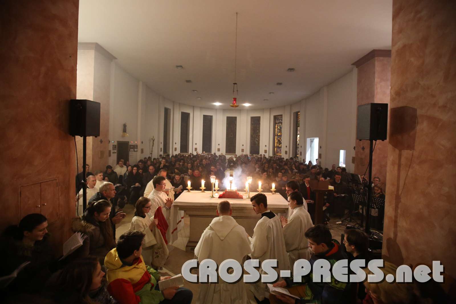 Meditation nach dem Morgenlob im Anbetungszelt."Visus, tactus, gustus in te fallitur,AnbetungAltarraum voll JugendlicherRund um den Tisch des Herrn Keywords New images Shopping CartSelect All None Keep only selected Add selected